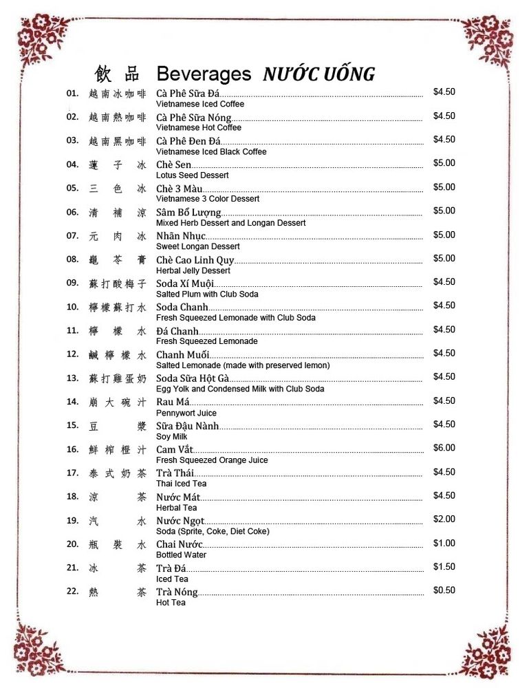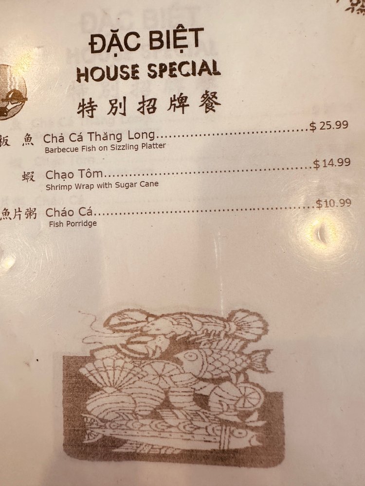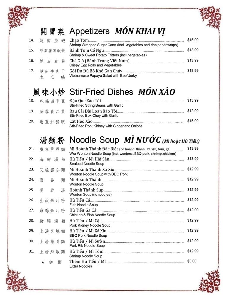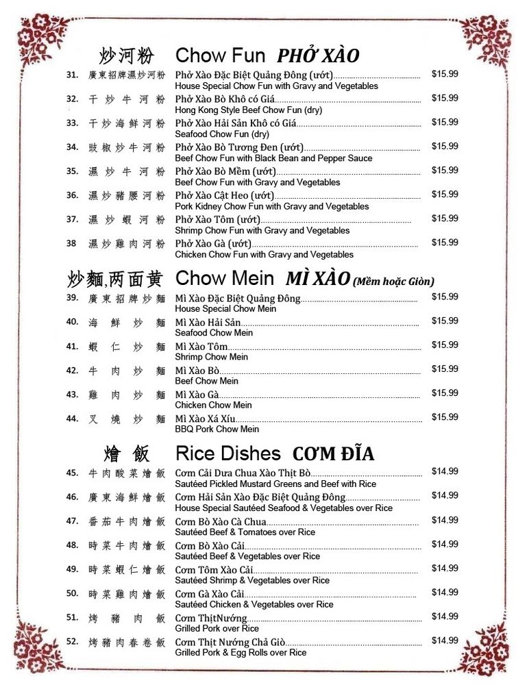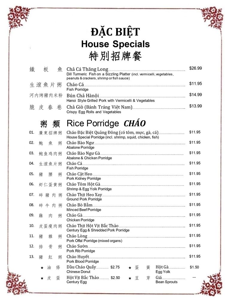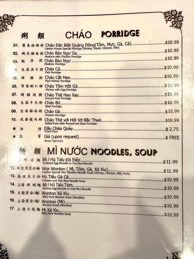 Canton Restaurant - Chao Ca Cho Cu Menu
